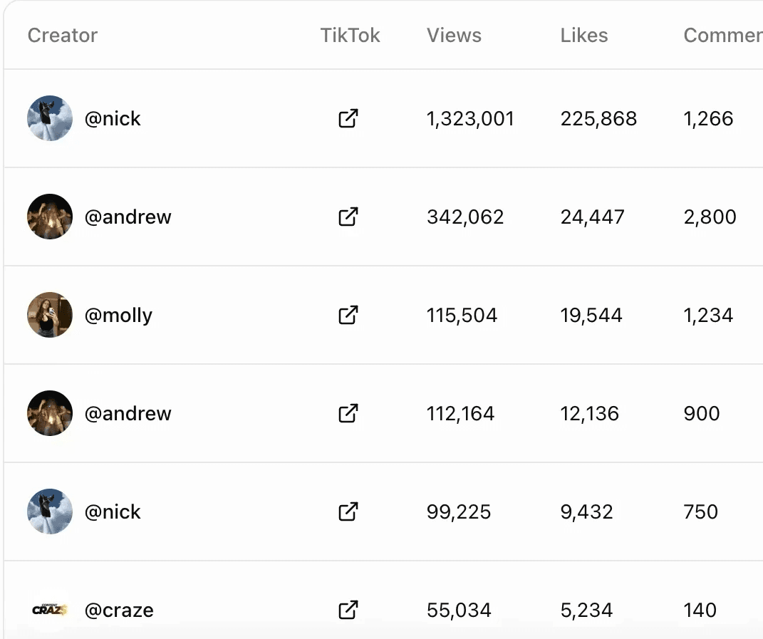 Quickly spot top performers and turn them into ongoing UGC partners.
